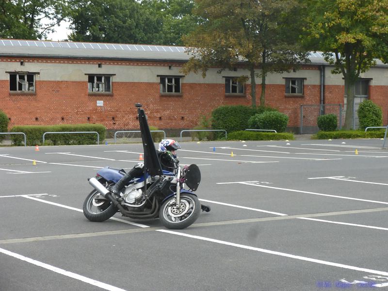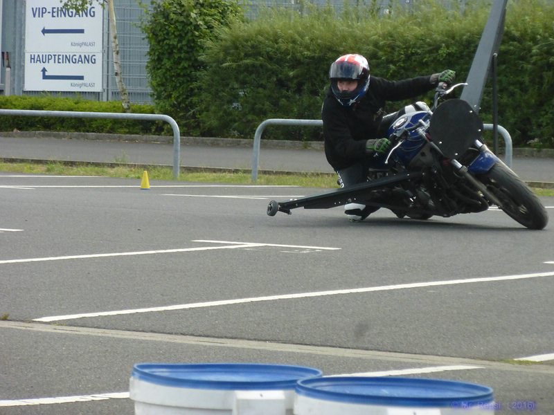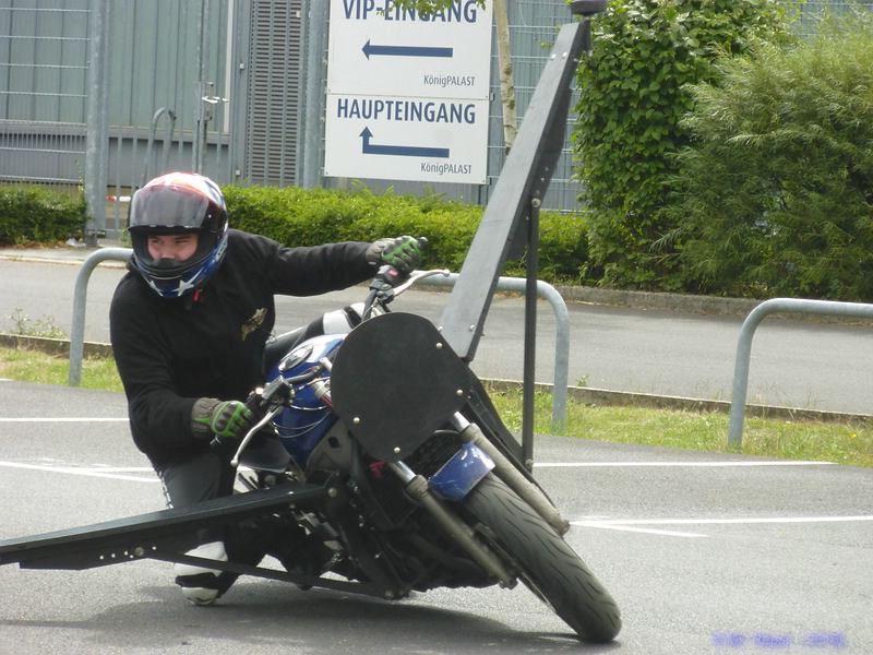 # 21.08.2016 - Kurventraining auf einem abgesperrten Bereich an Mo's Bikertreff. Hier konnten wir mit Hilfe eines speziellen Auslegermotorrads unsere Grenze testen. Je mehr Kurven, desto mehr Spaß macht das Motorradfahren und je sicherer die Kurventechnik, desto größer das Fahrvergnügen. Perfekte Kurvenlinie, geschärfter Blick, angemessene Geschwindigkeit - die Kombination macht's, um Fahrspaß zu erleben und noch intensiver jede Kurve genießen zu können. Ich konnte sogar das Knieschleifen erlernen. Perfekt, immer wieder. Der Trainer war super, er ist auf alles akribisch eingegangen.